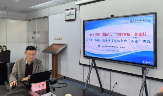 会上,郎富平以《“百县千碗”惠民生,“共同富裕”食先行——以“食”为媒,服务学习型社会的“浙旅”实践》为题作主旨报告,从标准制定、人才培养、文化研究和产业服务等四个维度,分享了我校服务“百县千碗”工程的实践经验和重要成果。